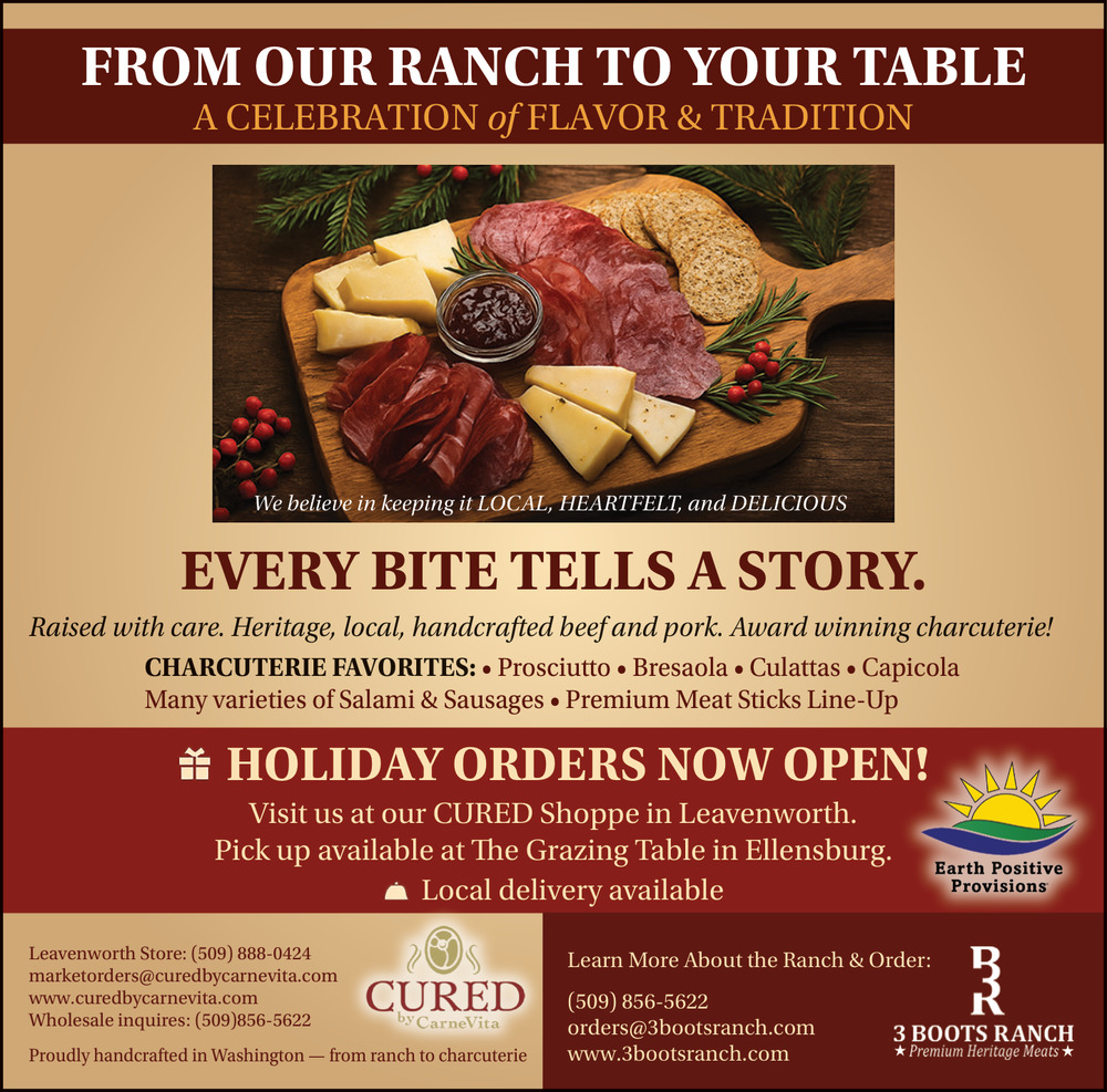 Ads for Earth Positive Provisions - Cured by Carne Vita - 3 Boots Ranch in Ellensburg, WA