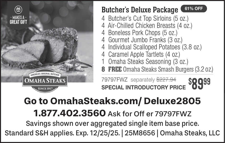 Nov 17, 2025. Omaha Steaks Food & Groceries Ads from Daily Record
