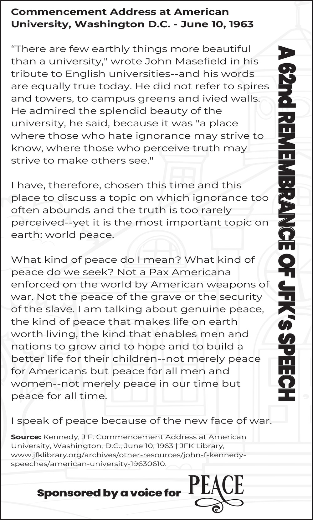 Ads for 62nd Remembrance of JFK's Speech in Ellensburg, WA