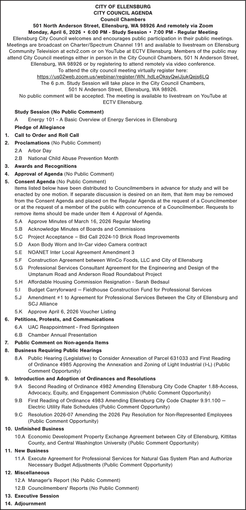 Apr 03, 2026. City of Ellensburg Government Ads from Daily Record